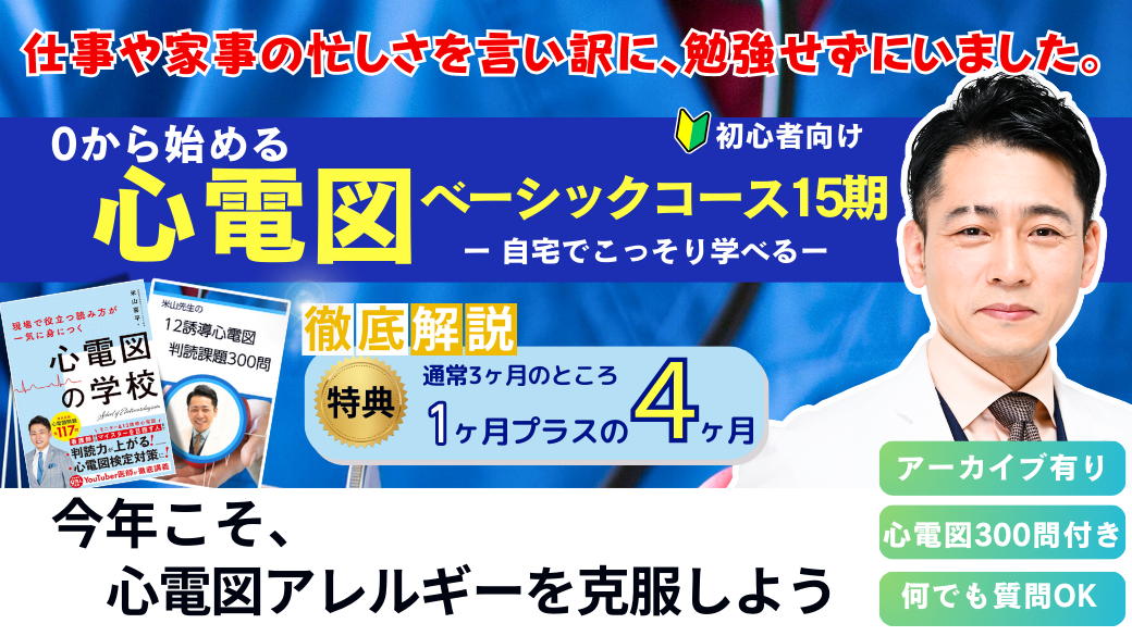 ❇️上記のQRコードから、米山先生の心電図の学校をお友達追加してください。